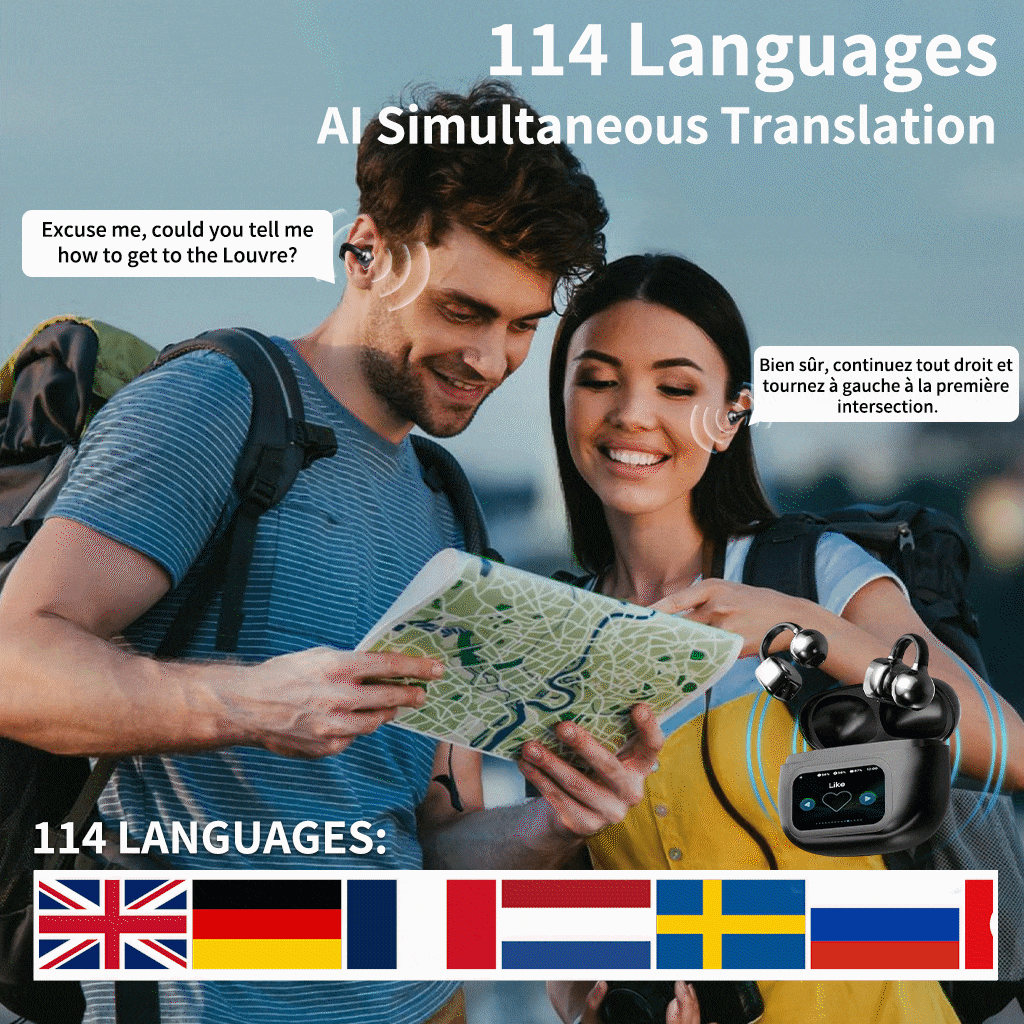 🔥2025 New Arrival - Ear Clip Style Bluetooth Translation Headset With Touch Screen